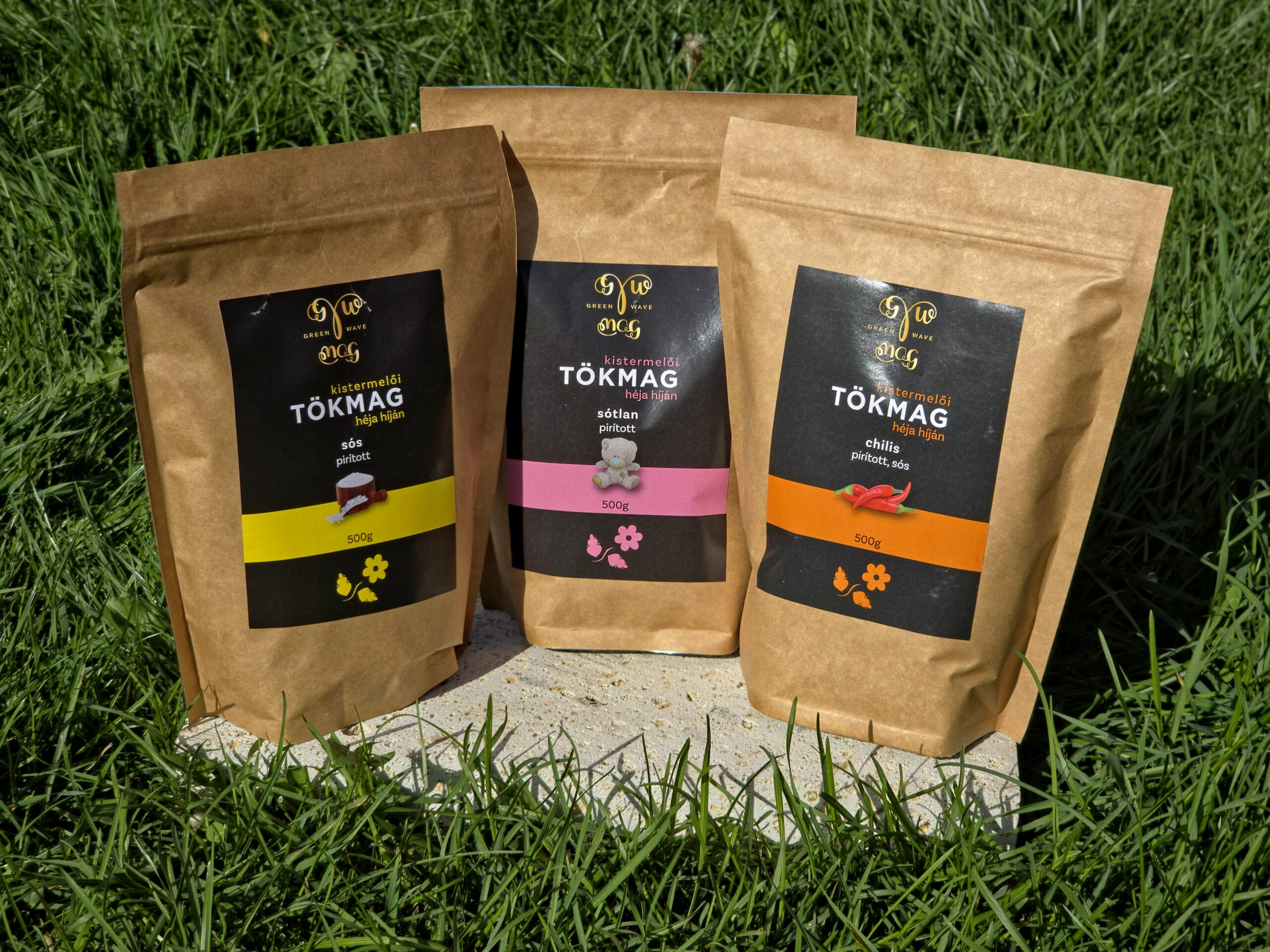 “Nálunk az eddigi top tökmagok a Green Wave Mag- ok ! Családunk nagy tökmag fogyasztó , és kritikusan de őszintén teszteli amiket hazahozok vásárokból , piacokról vagy rendelek webshopokból 🙂 Azt hiszem vége a kísérletezgetéseknek , mert megtaláltuk a legroppanósabbat , legjobban - legfrissebben pörköltet , kellemesen sózottat ! Ajándékba szuper választás a cuki kis dobozos kiszerelés , eddig mindenki örült aki tőlünk ilyet kapott ! Magunknak a lédig kiszerelést választom! Engem plusszban a csomagolás is megvesz : a színek , a doboz, a papírtasak és a grafika , a környezettudatosság fontos része a termékválasztásomnak! Átjön a termékekben a gondoskodás és szeretet energiája ! Szívből ajànlom mindenkinek, kóstoljátok meg a bazsalikomosat és chiliset is ! 🙂 "